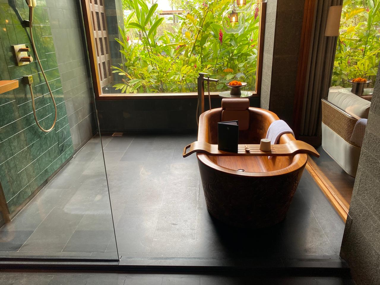 ・バリのホテルでは珍しい、木製のバスタブがとにかく気になってしまいました!